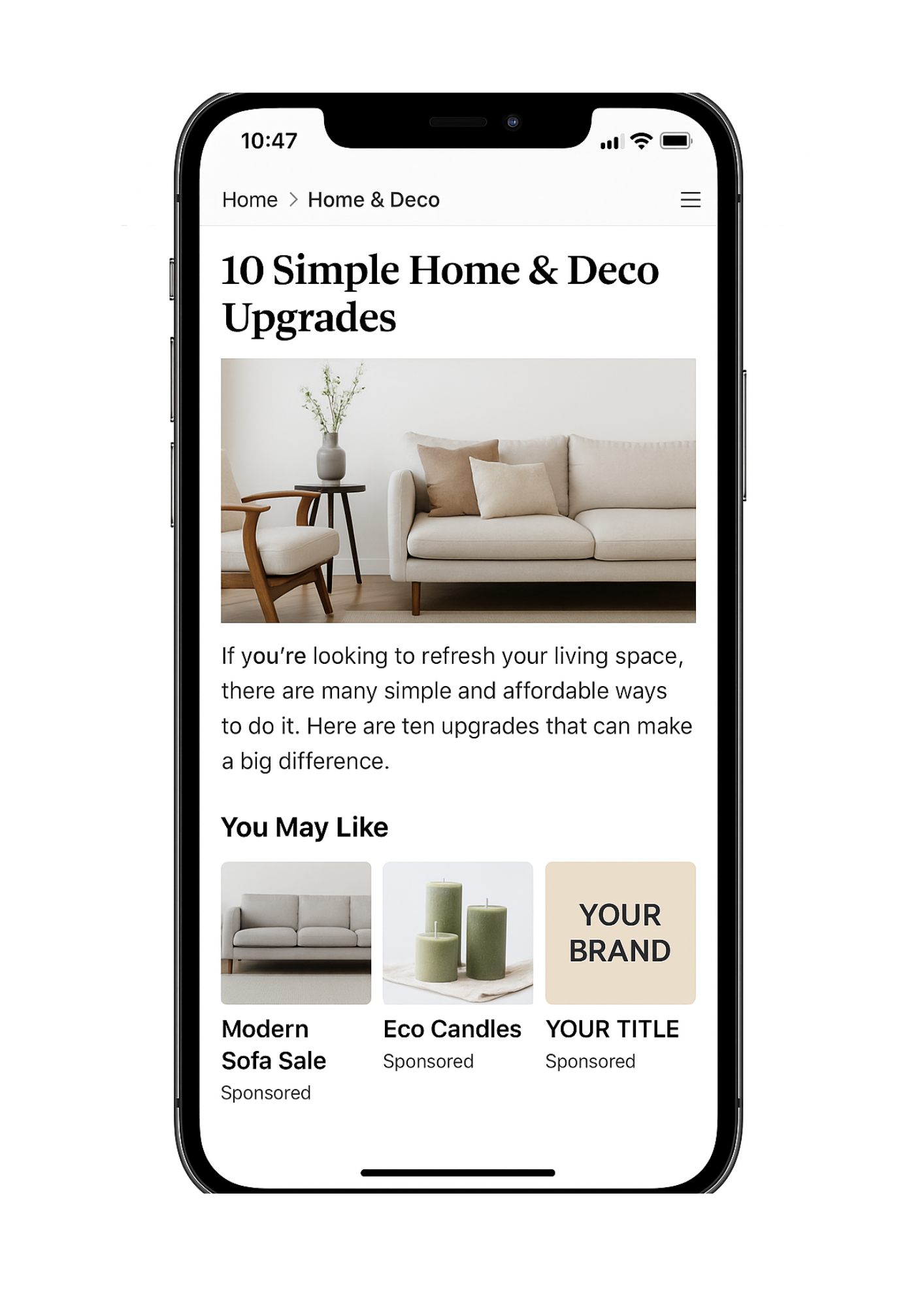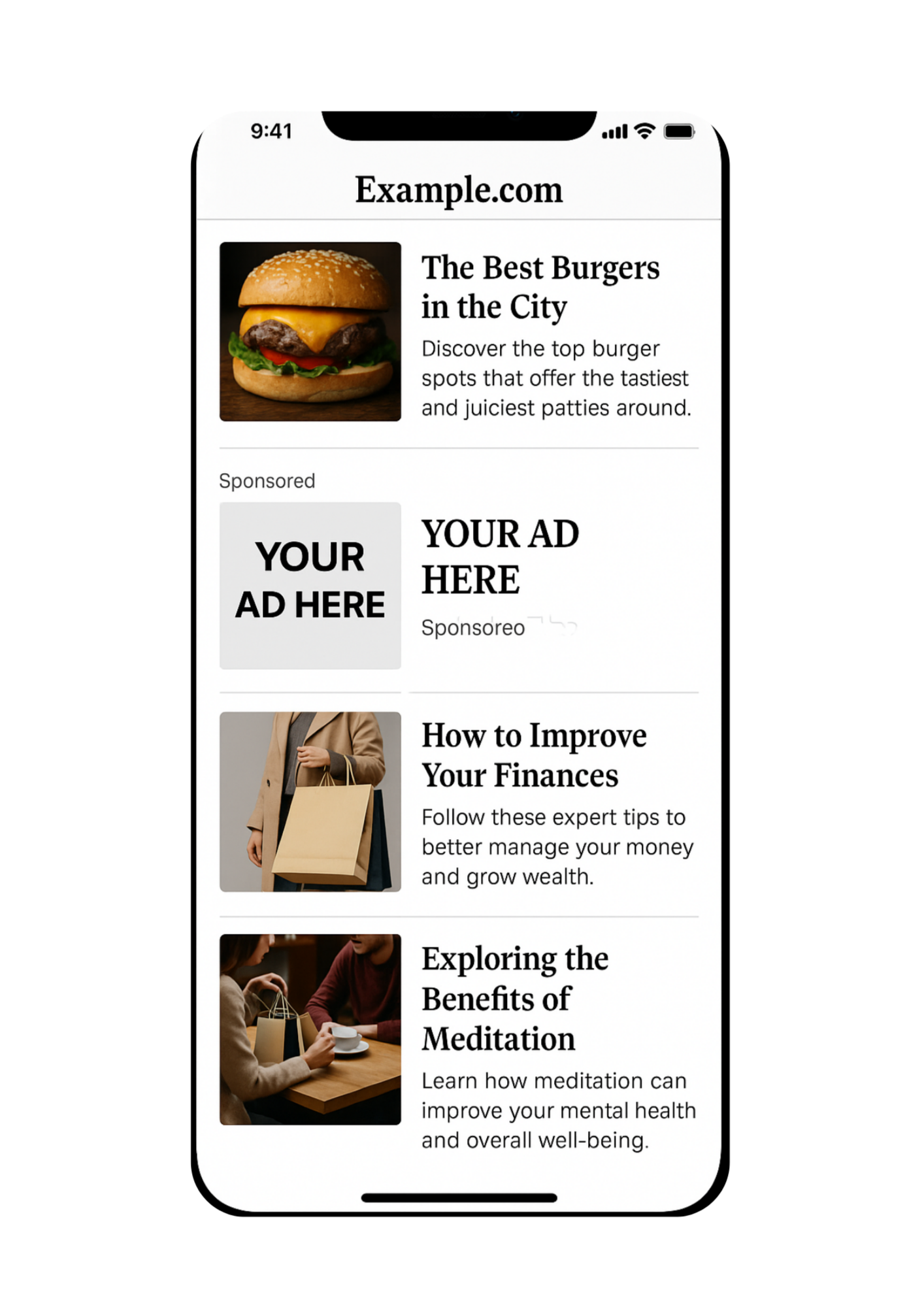 Native advertising sits at the intersection of performance and storytelling. Instead of interrupting the user journey, native placements flow naturally within the content users are already engaging with—appearing as recommended stories, in-feed articles, or discovery tiles on top-tier publisher sites. The result is authentic visibility where attention already lives.